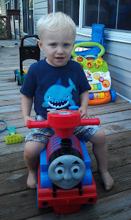 This was before he took a shovel full of sand and covered all the buttons on top of this Thomas toy.